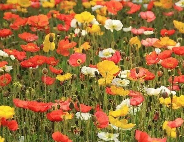 虞美人是1~2年生的草本花卉,通常都當一年種植,花色豐富多彩,適合大面積種植做花海。