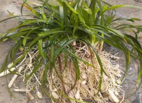 雖然麥冬的葉子和吊蘭葉子很像,但是如果挖出來看根部,他們會有明顯的不同,麥冬的根部又細又長,并且堅韌,而吊蘭的根部就比較肥大,圓柱狀的根部看上去肉質很厚,不過吊蘭的根比較容易折斷。