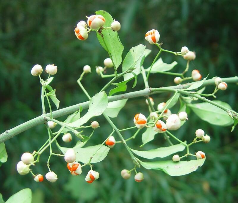 果期不同:扶芳藤大約在10月份開始結果,種子的形狀是長橢圓形,而黃楊大概在6~7月份結果種子是接近圓球形狀的,它們果實的顏色也是不一樣的,扶芳藤的果實外皮包著一層白色的殼。
