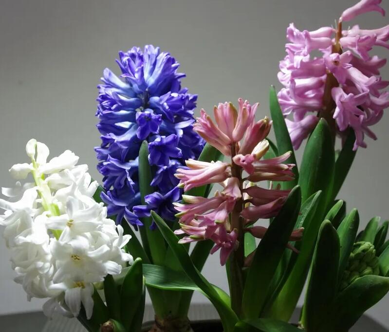 風信子也是屬于耐寒性非常好的草本植物之一,比較喜歡涼爽的氣候環境,哪怕氣溫在零下5度左右時也能保持綠色,如果土壤養分足夠的話,都能抽出花劍開花,但是如果用水培的風信子,就一定要放在0度以上的環境中養護,因為溫度低水會結冰,凍傷風信子種球。