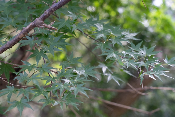 紅楓早春發出嫩芽的時候,是呈現紅色的,隨著時間的變化,顏色越來越淺,從艷麗變成淡紫色,甚至帶有一點點的暗綠色,所以,不同的時間觀上有著不同的趣味