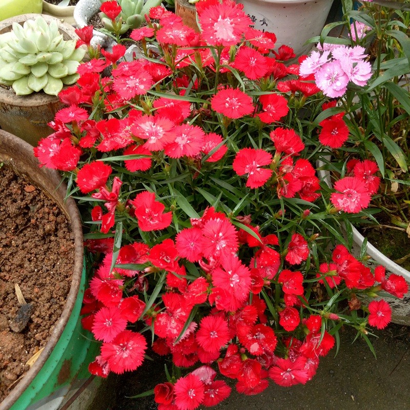 - 常夏石竹屬于多年生草本,它是宿根花卉的高度一般都在30厘米左右,上部分枝比較快,所以花期比較長,而且花的形狀比較獨特,現在播種常夏石竹的地方也比較多。種植戶如果想要了解更多